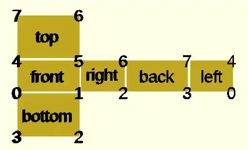equivalent descriptions of the bottom face [0,1,2,3], [0,1,2,3,0], [1,2,3,0], [2,3,0,1], [3,0,1,2], [0,1,2],[2,3,0], // 2 triangles with no overlap [1,2,3],[3,0,1], [1,2,3],[0,1,3],