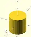 defaults: cylinder(); yields: cylinder($fn = 0, $fa = 12, $fs = 2, h = 1, r1 = 1, r2 = 1, center = false);