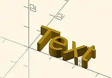 Text can be changed from a 2 dimensional object into a 3D object by using the linear_extrude function.
