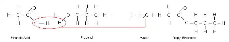 Ethanoic Acid reacts with Propanol to form Propyl Ethanoate