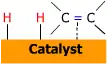 The Alkene forms a complex with the catalyst surface due to the vacancy of the orbital on the metal interacting with the filled π orbital. Thus we have a structure that looks somewhat like this: