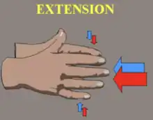 | Extension | Opposite rotation of the sphenoid and occiput about two transverse axes passing through sphenoid and occiput |  Extension Cranial Somatic Dysfunction Bone Motion | Fingers move toward physician and come together |  Extension Phantom Hands Movement |