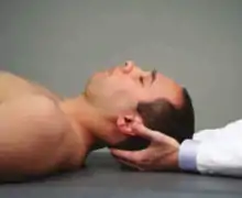 | Occipital condylar decompression | The patient is supine. The physician's index and middle fingers approsimate the condylar processes and initiate a gentle cephalad and lateral force. |  Occipital Condylar Decompression |
