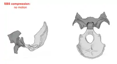 | Sidebending-Rotation | The sphenoid and occiput rotate about two vertical axes in opposite directions and in the same direction about an anteroposterior (AP) axis |  Left Sidebending-Rotation Cranial Somatic Dysfunction Bone Motion | Relative to the dysfunctional side: