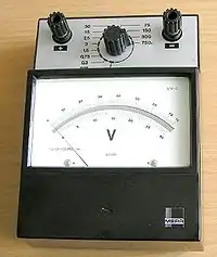 The voltmeter's terminals must be in parallel with the voltage being measured. Voltmeters have a large resistance (typically 1 megaohm), so that they only have a small effect on the voltage.