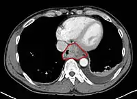 • Middle thoracic - 11% superior mediastinal, 21% middle mediastinal, 18% lower mediastinal, 40% abdominal nodes