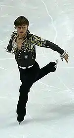 - Slide forwards on a left inside edge; keep your left arm in front of you and the right arm to the side.