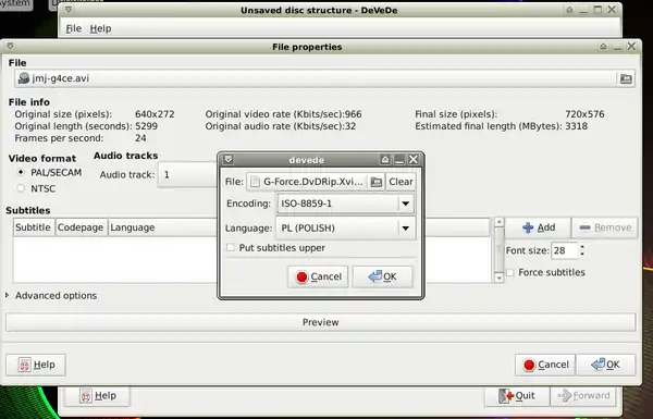 6. You may add a subtitle file, change it's encoding and language-> OK.