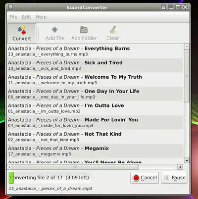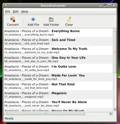 Soundconverter in easy way can convert audio files from: Ogg Vorbis, AAC, MP3, FLAC, WAV, AVI, MPEG,