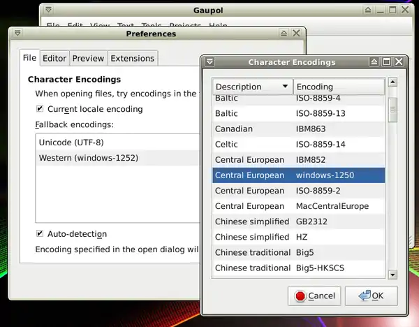 3. If you use different language than english, change encoding: Edit-> Preferences-> Add-> choose any from the list.