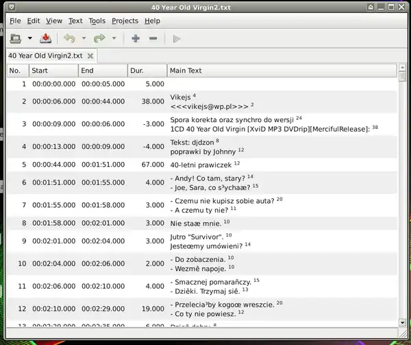 If you watch movies with subtitles and you'd like to edit subtitle file just use Gaupol.