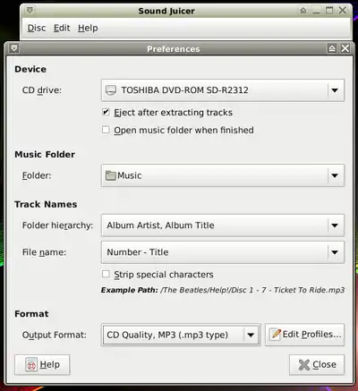 Sound-juicer is a small application designed to playing, extracting and encoding audio files from audio CD's.