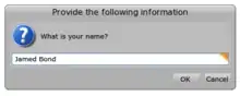 UIManager default request: 'What is your name?'. "James Bond"