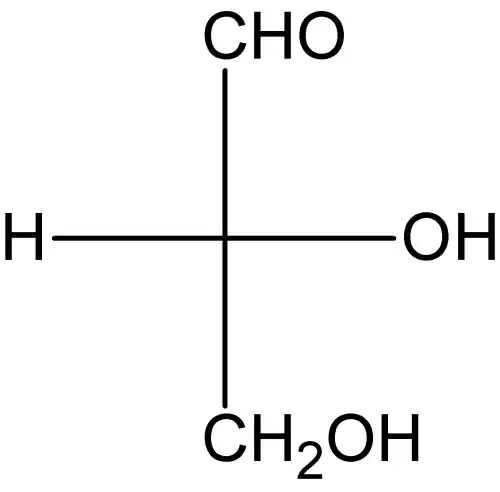 In Fischer projections, bonds attaching substituents to the central carbon are shown using horizontal and vertical lines. Similar to the hashed-wedged line structures, horizontal lines are indicative of bonds coming towards the viewer, while vertical lines indicate bonds going away from the viewer. It is a simplified way of showing tetrahedral carbon atoms and their substituents in 2 dimensions. Converting hashed-wedged structures to Fischer projections is a simple process. Here is an example shown below.