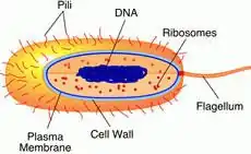 - Nucleoid: analog to nucleolus of eukaryotes, nucleoid contains DNA, genetic material of the cell, but it is not enclosed by any membrane.