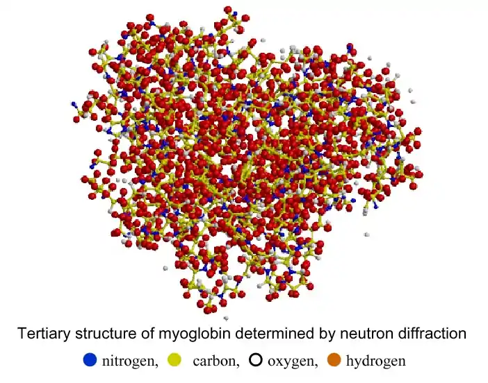 Neutron Diffraction (also known as neutron scattering or neutron crystallography) is an experimental science that studies the spatial arrangement of atoms in proteins. Although neutron diffraction and X-ray scattering techniques use different radiation sources, the resulting diffraction pattern is analyzed using the same coherent imaging techniques. However, the use of neutron diffraction as an experimental technique is still a relatively new technique compared to X-ray and electron diffraction because the accumulation of free neutrons, the radiation source, can only be obtained from nuclear reactors.
