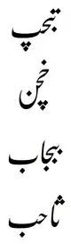 | بٹ | بٹب | ٹا | ٹ | Hard "ṭ" |