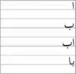 The table above shows Alif (connected with Be, the other letter in this lesson - see below). In its isolated position, it is a simple line, similar to the lower case English 'l'. Like 'l', Alif also represents the height of a "line" of Urdu writing, though, as we shall see, certain letters extend above or below the line.