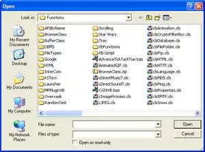 The save dialog is identical in apperance and function, with the exception of the caption. At run time, when the user chooses a file and closes the dialog box, the FileName property is used to get the selected file name.