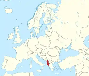 Albania is a small country in south-eastern Europe in the Balkan peninsula. It shares borders with Greece, Montenegro, Kosovo, and Macedonia. The capital is Tirana. The currency of Albania is the Lek. Other large cities are Durrës and Elbasan. Albania isn't part of the European Union.