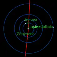 Jupiter has 63 known moons. There are four major moons that were discovered by Galileo in 1610, the first moons ever discovered around another planet. Those moons are Io, Europa, Ganymede and Callisto; they are named from characters in mythology closely associated with Jupiter. They are called the Galilean moons. There are often eclipses on Jupiter's cloud tops by the Galilean moons.