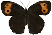 ![]() Cercyonis pegala, the common wood-nymph butterfly. Adult pictured. |