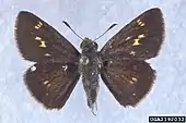 ![]() Poanes hobomok, the Hobomok skipper butterfly. Adult pictured. |