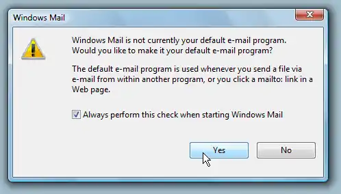 Click on YES to make Windows Mail the default (always used) e-mail client