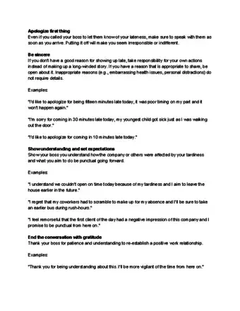 - You should give an apology in person even if you called in beforehand to tell your employer that you were going to be late.[14]