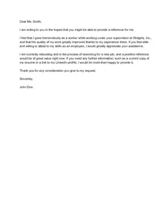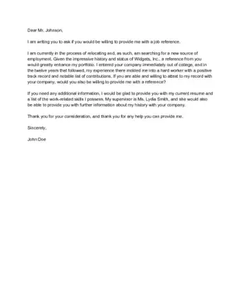 - For instance, instead of asking “John, will you write me a letter of reference?” try something like “John, I would really appreciate you writing a letter of reference on my behalf if you are willing and able to.”