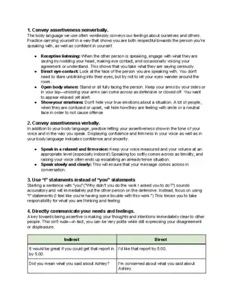 2Learn verbal features of assertive communication. The verbal cues that indicate assertive communication convey respect, sincerity and firmness. These cues might include: