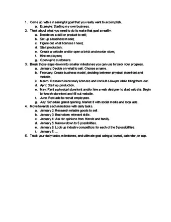 1Set a goal. Spend some time thinking about exactly what results you wish to achieve and be as specific as you can. Establish a time frame for achieving each part of your final goal. Set your sights on a goal that is reasonable to accomplish.[1]
