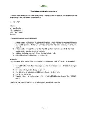 To calculate acceleration, use the equation a = Δv / Δt, where Δv is the change in velocity, and Δt is how long it took for that change to occur. To calculate Δv, use the equation Δv = vf - vi, where vf is final velocity and vi is initial velocity. To caltulate Δt, use the equation Δt = tf - ti, where tf is the ending time and ti is the starting time. Once you've calculated Δv and Δt, plug them into the equation a = Δv / Δt to get the acceleration. To learn how to calculate acceleration from a force, read the article!