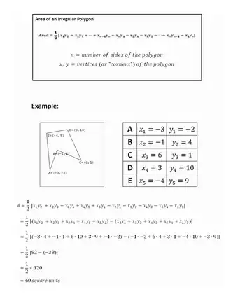 2Create an array. List the x and y coordinates of each vertex of the polygon in counterclockwise order. Repeat the coordinates of the first point at the bottom of the list.[9]