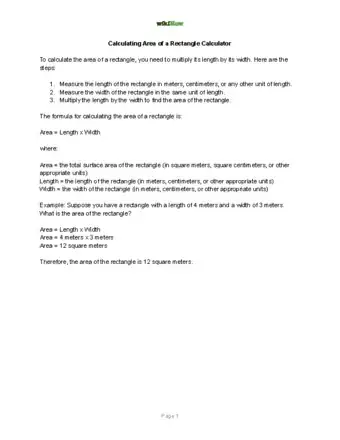 2Learn the equation for finding the area of a rectangle. The equation for finding the area of a rectangle is simply A = L * W.[3] This means that the area is equal to the length of the rectangle times its width.
