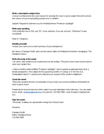 - If you do not know the email address of the recipient, this can be found by scanning the company website. If no email is listed, be wary about contacting the person via email. You might want to opt for a physical letter instead.