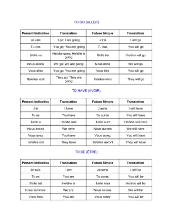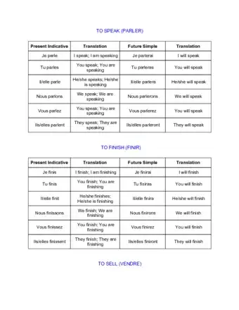 - Example: PARLER: Je parlerai, tu parleras, il/elle/on parlera, nous parlerons, vous parlerez, ils/elles parleront