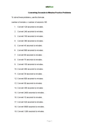 To convert seconds to minutes, divide the number of seconds by 60, since there are 60 seconds in a minute. If you get a decimal in your answer, multiply only the decimal part by 60. For example, if you get 1.6 minutes as an answer, you'd multiply .6 by 60 to get 36 seconds, and your final answer would be 1 minute and 36 seconds. For example problems and ways to check your work, read on!
