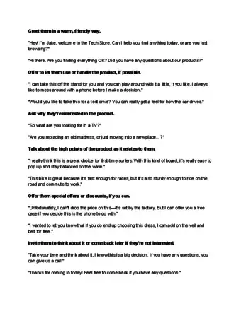 Listen to the other person speak. Pay attention to what the other person has to say. If you stop listening, you may get caught up in whatever sales pitch you rehearsed. Remember to meet the person on their level, staying friendly and responding to any concerns they have.[11]