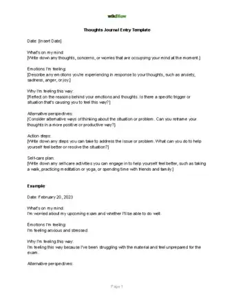 Thoughts Journal Entry Template