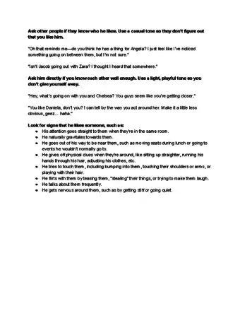 - If you don't want to ask him directly, look for clues. If he spends a lot of time with her and talks about her a lot, he may be getting ready to ask her out.