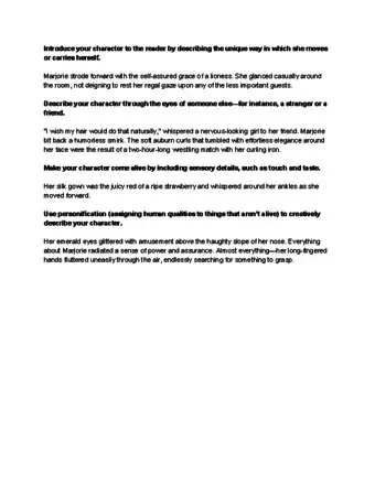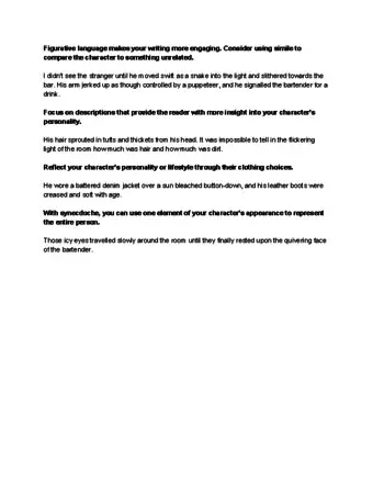 - For example, you might describe your character over the course of a scene rather than all at once.