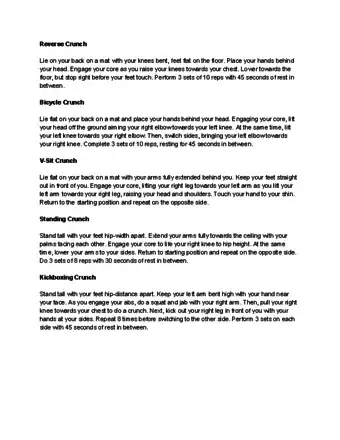 - Do 2–3 sets of crunches that each have 10–15 reps.