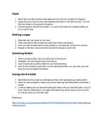 Sample Warm-Ups, Stretches, and Exercises to Help with the Splits