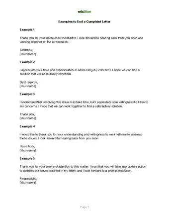 - For example, you may write, “I look forward to your reply to my complaint” or “I trust you will respond to my complaint in kind.”
