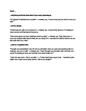 • If you want to end a text conversation, try letting them know why you aren’t available to talk, responding with an emoji, or waiting to respond.