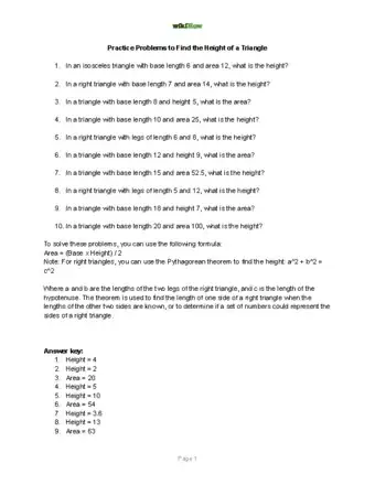 If you know the base and area of the triangle, you can divide the base by 2, then divide that by the area to find the height. To find the height of an equilateral triangle, use the Pythagorean Theorem, a^2 + b^2 = c^2. Cut the triangle in half down the middle, so that c is equal to the original side length, a equals half of the original side length, and b is the height. Plug a and c into the equation, squaring both of them. Then subtract a^2 from c^2 and take the square root of the difference to find the height. If you want to learn how to calculate the area if you only know the angles and sides, keep reading!