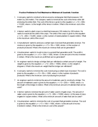 For a variety of reasons, you may need to be able to define the maximum or minimum value of a selected quadratic function. You can find the maximum or minimum if your original function is written in general form, , or in standard form, . Finally, you may also wish to use some basic calculus to define the maximum or minimum of any quadratic function.