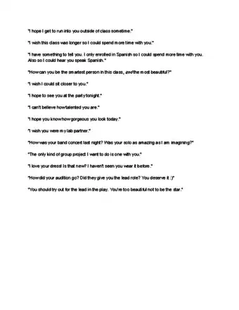 Lean over and give her a compliment if you're sitting close enough.[4] If you manage to get a seat right next to your crush, quietly give her a compliment during class. The trick to giving a great compliment is to be sincere. Pay attention to what you like about her and compliment that.[5]