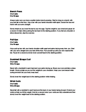 - Be sure you are able to complete each full exercise for at least 6-8 reps. If you cannot do this many, the weights you are using may be too heavy.